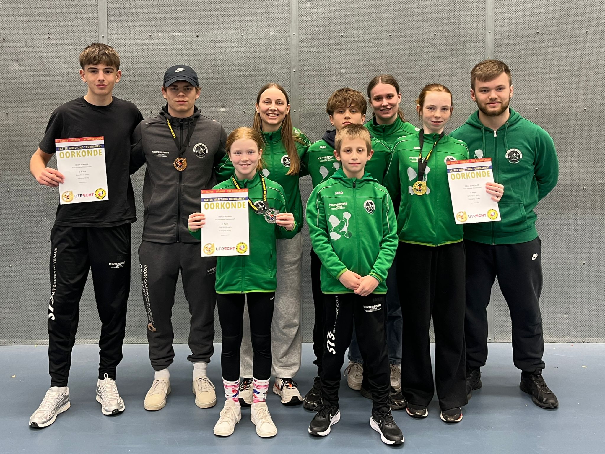 Am Osterwochenende machte sich eine zwölfköpfige Truppe des KSV Waldaschaff auf den Weg ins niederländische Utrecht, um am 53. Easter Wrestling Tournament zu starten. Das internationale Turnier, an dem Sportler aus 24 Nationen an den Start gingen, ist mit knapp 800 Teilnehmern eines der größten Turniere Europas und versprach von Anfang an spannende Kämpfe auf Topniveau. Nachdem am Samstag bereits 800 Kämpfe auf sieben Matten ausgefochten wurde, wobei vier unserer sieben mitgereisten Sportler alle ihre Kämpfe für sich entscheiden konnten, ging es am Sonntagmorgen mit den restlichen Kämpfen weiter. Nach knapp 1270 Kämpfen konnten wir gegen 17 Uhr die Heimfahrt mit drei Medaillen antreten. Nicht nur sportlich haben die Jungs und Mädchen an diesem Wochenende viel Erfahrung sammeln können, sondern auch außerhalb des Wettkampfes wurde die Gemeinschaft durch schöne Abende gestärkt.